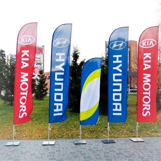 Прапор друкується на тканині з назвою «прапорна сітка», яка спеціально виготовлена з урахуванням кліматичних умов експлуатації виробу. При пошитті прапор по периметру прошиваєтеся подвійним рядком посилюючі міцність. З лівої сторони робиться глухий карман з отвором знизу. Прапор розрахований до 6 місяців експлуатації надворі.