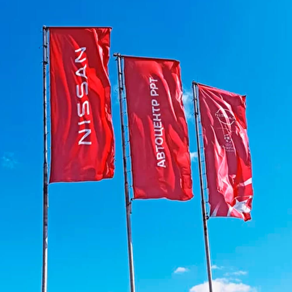 Прапор друкується на тканині з назвою «пиліефирній шовк», це напівпрозора тканина синтетичного складу який притаманні всі властивості cублімаційного друку. Достатньо міцна для нетривалого строку експлуатації. Основною перевагою прапора з поліефірного шовку є то что малюнок майже повністю профарбовує тканину наскрізь. Зображення виглядає однаково насиченим з обох сторін віробу. При пошитті прапор по периметру прошиваєтеся подвійним рядком посилюючі міцнисть. З лівої сторони робиться глухий карман з отвором знизу. Прапор розрахований до 1 місяців експлуатації надворі и необмежено в приміщені.